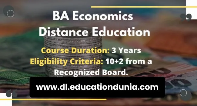 Distance BA economics hons provide flexibility in learning. It is a UG degree with an average duration of 3 to 4 years. The course is available at DU SOL, Subharti University, SKU and IGNOU. The minimum requirement for Distance BA Economics is the 12th examination with 45% from a recognized board.