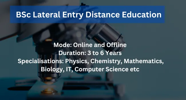Through the Distance BSc Lateral Entry program, students can work and study together, and there are affordable fees and online learning options available. This program is popular due to its unique teaching method and syllabus, which is similar to that of the regular BSc program. These merit-based admission programs are popular at top universities such as Amity University, Symbiosis Distance Learning, Krishna University, and Odisha State Open University.