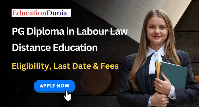 PG Diploma in Labour Law Distance Education Admission 2026: Postgraduate (PG) Diploma in Labour Law is a specialised interdisciplinary program that is offered through regular mode in India. Students who choose to study this program can complete it in 1 year. The basic admission eligibility is a graduation degree from any recognised university, and then they can pursue this course. The online admission for the current session 2026-27 has started, and applicants will be able to submit an application until the expected last date of 15 May 2026*. PG Diploma in Labour Law Distance Education average fees are INR 50,000 to INR 3,00,000. Applicants can pay their fees online through the official websites.
