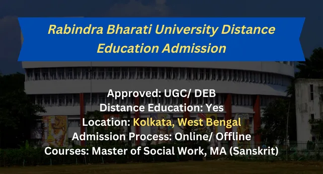 Rabindra Bharati University Distance Education 2025: Rabindra Bharati University Distance Learning is a state government university that offers UG and PG courses in distance mode. This university has invited candidates to apply for academic programs, such as postgraduate programs, for the 2025-26 session. Applicants can choose several specializations under postgraduate programs. Rabindra Bharati University distance education admission form is available for candidates until an expected date of 16 October 2025*. The university selects students who have a bachelor’s degree in any discipline with a minimum of 50% marks. UG course registration fee is Rs 250, and PG course registration fee is Rs 500.